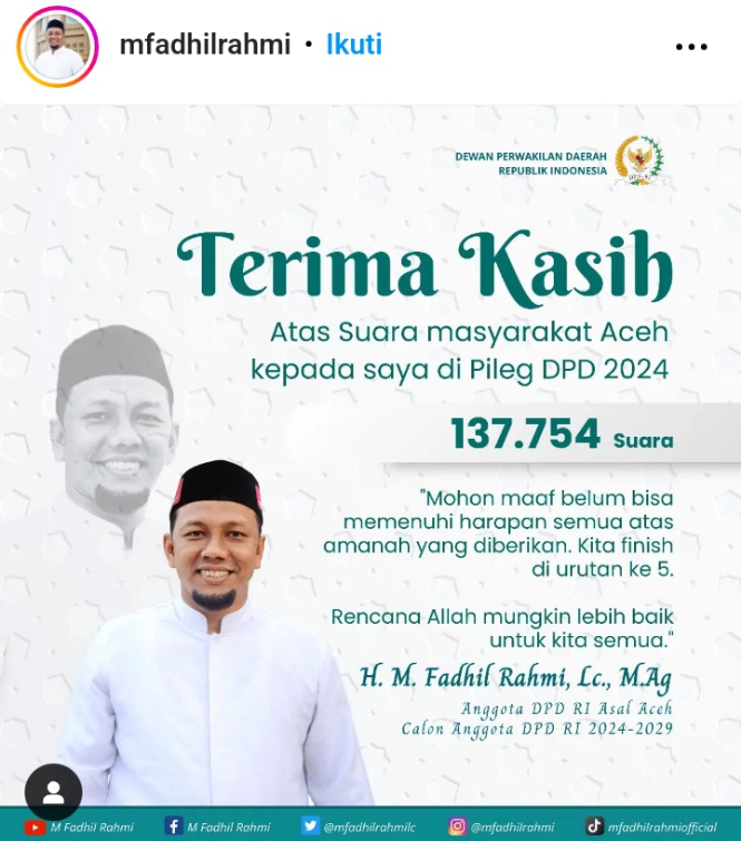 Dikutip dari laman Instagram Syech Fadhil Rahmi menyatakan, siap teruskan perjuangan Tu Sop.