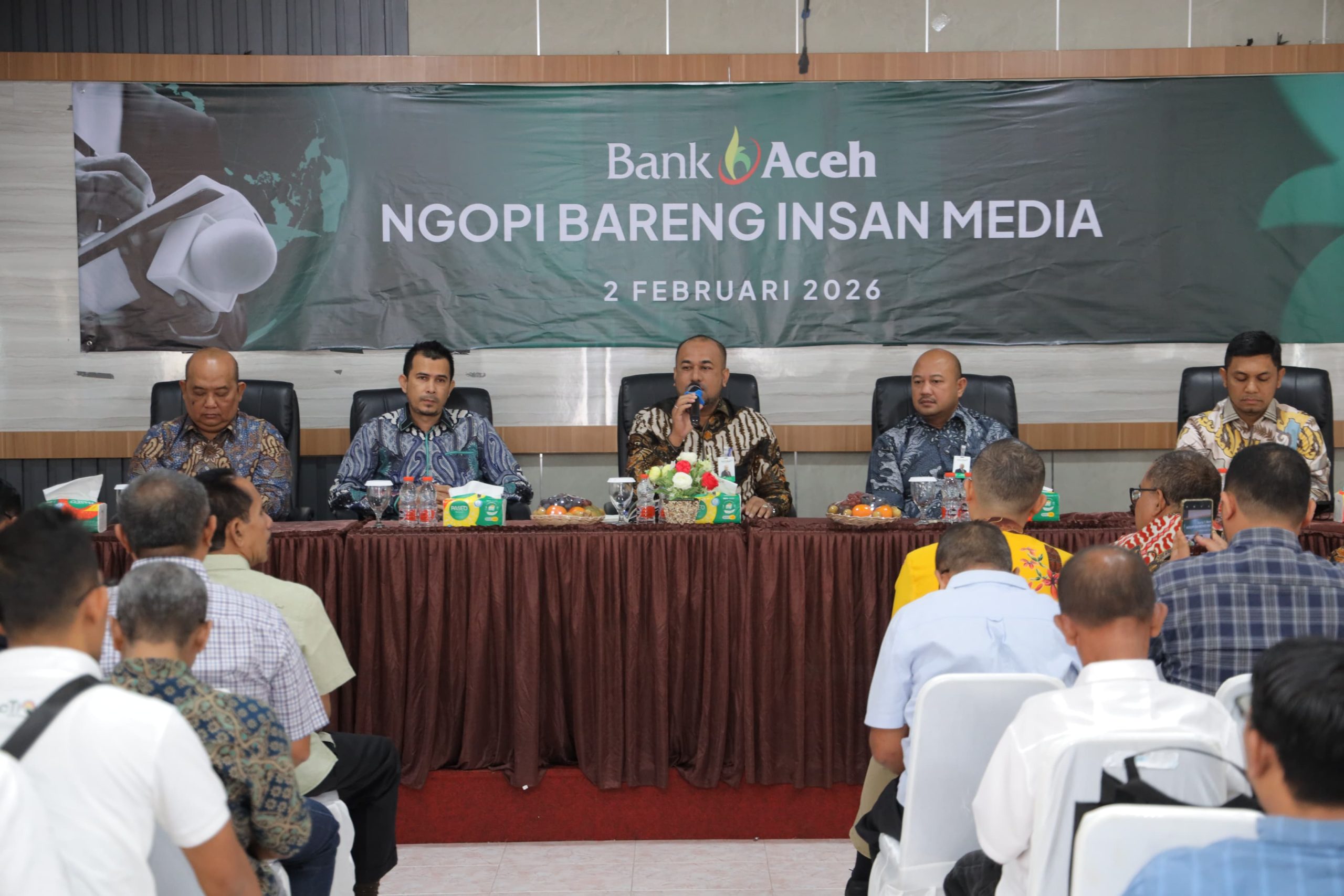 Banda Aceh — Setelah dimulai dengan pembacaan ayat suci Al’quran dan mukadimah, yang dilanjutkan dengan kata sambutan oleh Direktur Utama Bank Aceh Syariah Fadhil Ilyas. Acara ngopi bareng bersama insan pers sering diwarnai kata canda, oleh Dirut pada pagi Senin, 2 Februari 2026 yang digelar di Gedung Expo UMKM Bank Aceh, Lampineung, Banda Aceh.