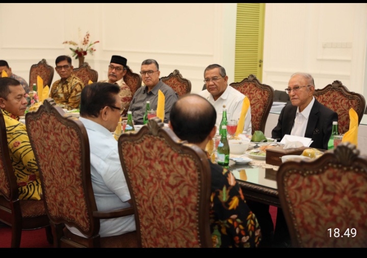 Acehconnect.com | Banda Aceh. – Wali Nanggroe Aceh Paduka yang Mulia Tgk. Malik Mahmud Al Haythar menerima kunjungan kerja Anggota Dewan Pertimbangan Presiden (Wantimpres) Agung Laksono beserta rombongan, di Meuligoe Wali Nanggroe, Jumat 9 Agustus 2024.