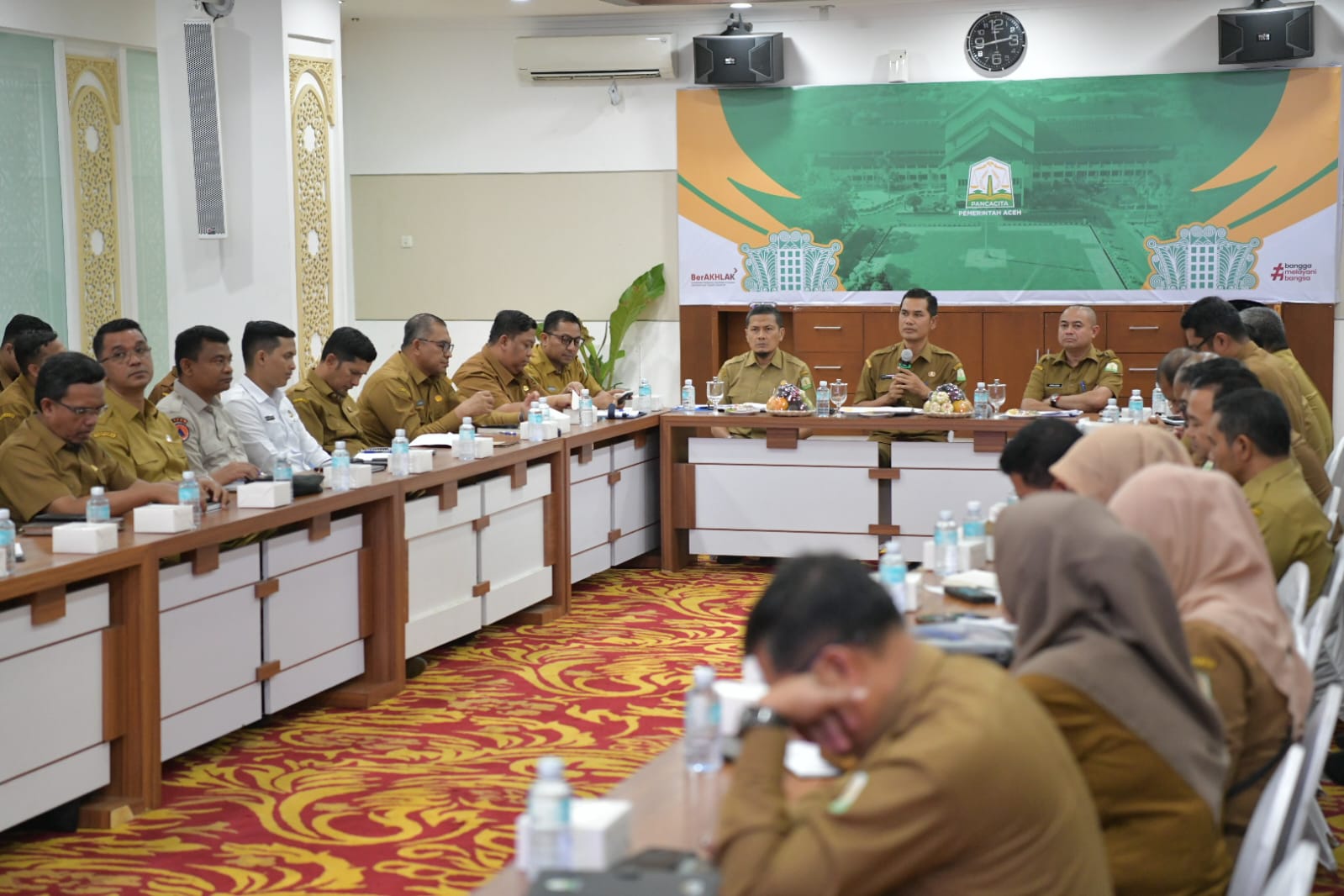 Aceh Connect | Banda Aceh. — Plt Sekretaris Daerah Aceh, Muhammad Nasir, menggelar rapat koordinasi bersama Kepala Badan Pengawasan Keuangan dan Pembangunan (BPKP) wilayah Aceh Supriyadi dan sejumlah Kepala SKPA terkait guna membahas langkah yang perlu ditempuh untuk penyerahan aset Rumah Sakit Regional untuk Pemkab Aceh Tengah, di Ruang Rapat Sekda Aceh, Senin, (14/4/2025).