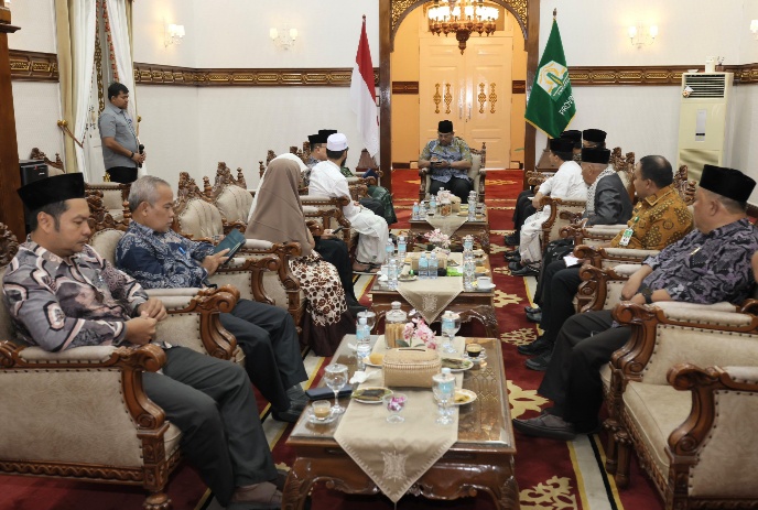 Pj Gubernur Aceh Dr, H. Safrizal, ZA, M.Si menerima Silaturrahmi ketua MPU Aceh dan rombongan di Pendopo Gubernur Aceh, Kamis 24/10/2024.