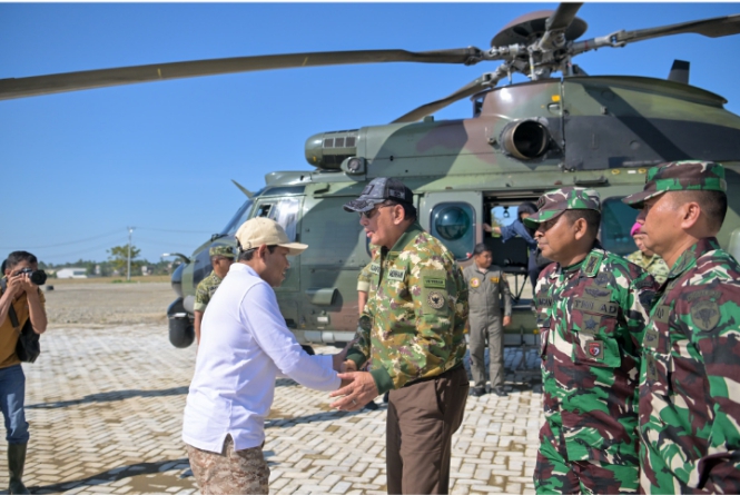 Wakil Gubernur Aceh mendampingi Menteri Pertahanan RI Sjafrie Samsoeddin dan Menteri Dalam Negeri RI, Tito Karnavian mengunjungi dan menyerahkan bantuan.