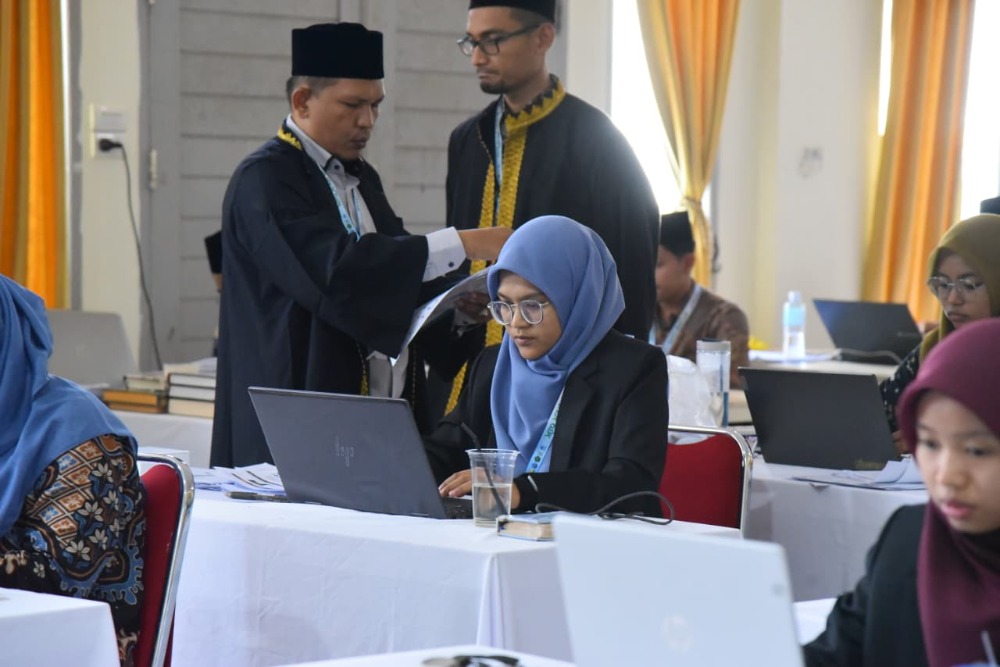 Qari dan qariah Aceh Besar cabang karya tulis ilmiah al-qur’an tampil pada MTQ ke-37 tingkat Provinsi Aceh tahun 2025, di Aula Kantor Kemenag Kabupaten Pidie Jaya, Minggu (2/11/2025). FOTO/ MC ACEH BESAR