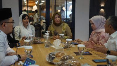 Ketua Dekranasda Aceh, Marlina MuzakirĀ berbincang dengan Penasehat Dharma Wanita Persatuan Kementerian Pariwisata dan Ekonomi…