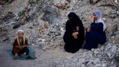 Momen warga Gaza saat Hari Raya Idul Adha, di tengah reruntuhan akibat agresi Israel. Foto:…