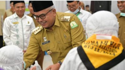 Pj Gubernur Aceh, Bustami, SE, M.Si, saat menyapa rombongan Jamaah Haji Kloter Terakhir/Kloter 12, Senin…