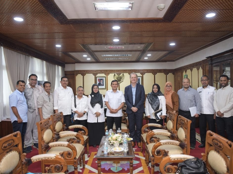 Wakil Gubernur Aceh, Fadhlullah, SE, di dampingi kepaa SKPA terkait menerima audiensi Yayasan Inisiatif Dagang Hijau (YIDH) di ruang kerja Wakil Gubernur Aceh, Rabu, 14/05/2025